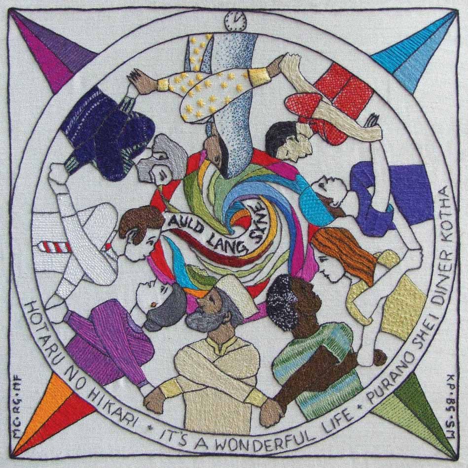 The Tapestry was initially launched May 31st/ June 8th 2014 at Prestonpans Community Centre with some 150+ panels completed. It was a major project for Scotland’s 2014 Homecoming sponsored locally as heir to The Prestonpans Tapestry completed in 2010 and supported with grants from CreativeScotland, EventScotland and the Scottish Government itself. Panels still continued to arrive and when a halt was finally called to contributions we had received 305. Veere in The Netherlands volunteered to provide the second Premiere from May 30th / July 26th . But the 10th Anniversary will see 311 panels as Icelandic stitchers and Chatham-Kent Ontario took their own initiatives to stitch and donate their braw tales.