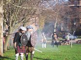 The Trustees of the Battle of Prestonpans 1745 Heritage Trust were present at the annual commemoration in Derby. It consisted of a running battle from the Market Place with the Drambuie Pipes and Drums playing fearlessly, a re-enactment stop-over to roust out the cowering Mayor from Jorrocks, passage by way of the Silk Inn adorned with as fine an historical mural as any Panner could hope to see and concluded with a skirmish on the Cathedral Green [scripted that the Hanoverian redcoats had to win!]. Wreath laying at the statue and Divine Service [the Order is given below] in the Cathedral itself followed - with its outstanding Georgian Nave just completed at the time Bonnie Prince Charlie attended Mass there beneath the Hanoverian Arms set into the Choir Screen.