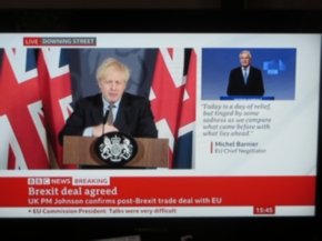 They're frenemies all right, but we are not defatigable! Watching and living through the EU's negotiations for their 'promised' trade agreement with the UK these past 11 months deploying their tactics of parallelism has, as many a commentator now asserts, strongly reinforced the decision to leave. The overriding significance of political rather than human or economic issues has been the most brazen manifestation of empleomania. Macron's posturing over the fish that swim in UK waters as he ponders his re-election campaign to come and Germany's wilful disregard of its automotive industry not to mention the emerging euroscandal over the purchase, recognition and distribution of Covid19 vaccines leave one aghast as does the state of the €. May we please cease describing the EU as "our friends"; frenemies is the correct description as they consistently give backword on issues which determine the lives and livelihoods of millions not least the thousands of truck drivers stranded at Dover these past few days. But nonetheless yes, this was the day we learnt that Brussels school classmates Boris and Ursula had finally reached a conclusion and we have a Brexit Trade Agreement … toasted in Coalport china for Brexit leaf tea.