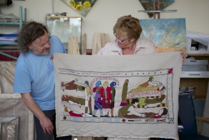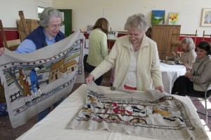 ... as reported, the completed panels are rolling in and the blocking and then the stitching and the backing are in hand.... have to get a chronological sequence of course before the stitching together takes place ....