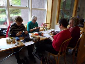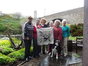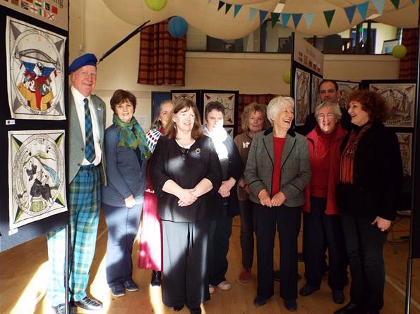 So there could scarcely be a more appropriate location to display our Scottish Diaspora Tapestry. And as was to be expected of Helmsdale, the local knitting group [pictured below at work and at the Official Opening by Gordon Prestoungrange and Arran Johnston on October 28th] had metamorphosed and transferred its skills to creating a panel that honours The Rutherford Collies.