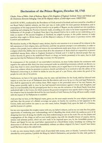 For the Prince's Supporters, advanced notice is attached below of the Declaration HRH Prince Charles Edward, Prince Regent, will be making at Holyroodhouse Palace October 10th 1745.