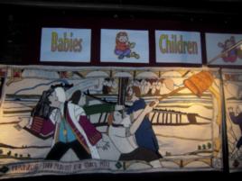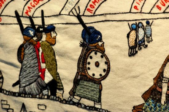 St Mary's is the second Scottish cathedral to play host to the Tapestry. Dunblane set the precedent with a magnificent exhibition during the Highlands Tour in summer 2010 and we confidently expect many more. But St Mary's felt their venue needed 'good lighting' for maximum impact - and that's a first. It's not especially photogenic [we've tried, Gillian Hart & Tony Marsh excelled], but the lighting makes a massive impact for the visitor walking the aisles! Just see the imagery to left and right of those two Alan Breck re-enactors!