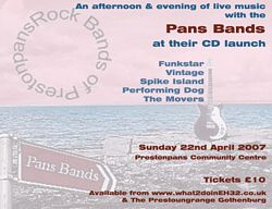 Yes, local bands have got together with just a little help from the Arts Festival to produce their own CD and it's scheduled for launch [premiere] at The Prestonpans Community Centre on Sunday April 22nd. Tickets can be bought online at the What2doinEH32.info website and at The Prestoungrange Gothenburg.