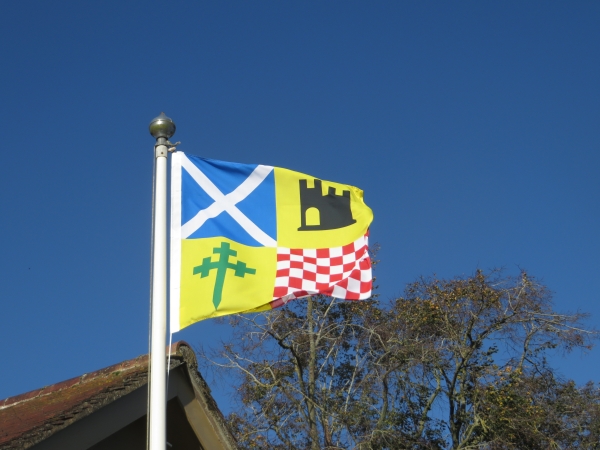 Elliot and I needed to replace the Lochnaw banner as the new lockdown began. He tied an elegant reef knot and the sun shone on a blue sky …. could it really be that blue …… the tattered flag we took down is now one more souvenir for Elliot Yr. of Lochnaw along with the Talking Stick and our Arms on the shield.