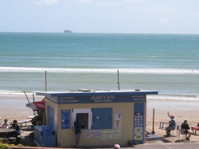 The sole end and purpose is shown here …. 'Tis true we both wanted to self isolate in Weymouth as well as in Milton once Boris said we could visit second homes and stay overnight! But the uppermost notion Avril had, having worked out we hadn't been to Weymouth for 5 months, was to buy an icecream from Pete at Auntie Vi's and paddle on the beach … so here it is … all sounds a tad Neville Shute for the immediate post-war generation!
