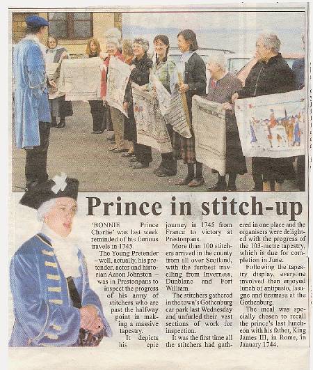 'Tis true. Every time HRH The Prince Charles Edward Stuart addressed his Army of Stitchers on March 24th at our MidWay Tapestry Workshop they broke into spontaneous cheers - just as the Ladies of Edinburgh had in September and October 1745. He responded, as he had previously written in 1746, after his second great Victory over the redcoats led by General Hawley at Falkirk: