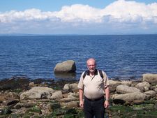 The glacial boulder which the Lord Mayor named [unseen] as Charles Belfield IV at high tide on Sunday evening is shown here on the sea shore with Jorgen Linder next day after the tide receded. It will be playing a significant role in the forthcoming Prestonpans Pottery Exhibition and its concluding Greek Plate Throwing Party later on in September!