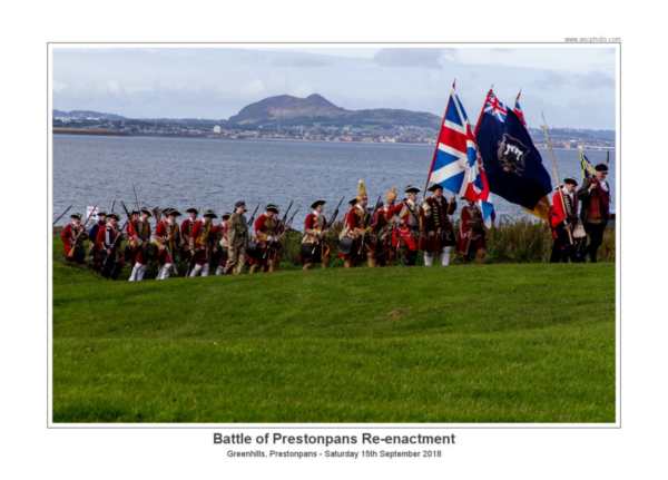 On horseback The Prince is confident as he leads the Clans who have gathered on Parade through Prestonpans, along Appin Drive and past streets named after all the Clans that Came Out in September 1745. After Prestonpans, many more Highlanders and Lowlanders joined The Prince as he marched to Derby after Victory here, but the Clans invited in 2018 were those who had responded to The Call and fought in that first successful engagement. [See details below.]