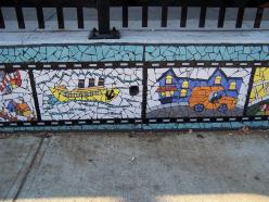 The mosaic runs along a retaining wall that is barely visible as you walk the pavement alongside it, and virtually indistinguishable from the far side of Bathurst.