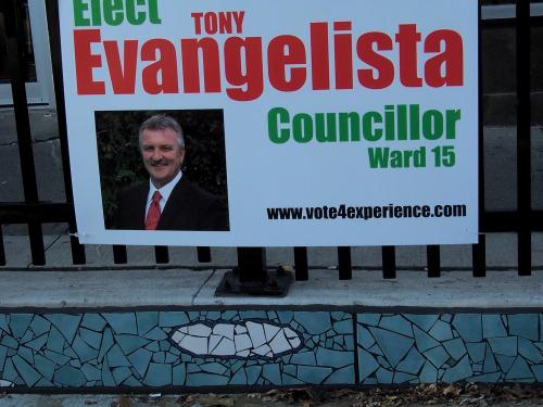 Karin Eaton had mentioned Cristina Delago's mosaic mural tale at The Global Biennial Conference in Colquitt, and then Cristina herself told the whole story at Collingwood's Symposium a week later. It was so intriguing that time simply had to be found to visit Toronto and track along to Bathurst and Lawrence.