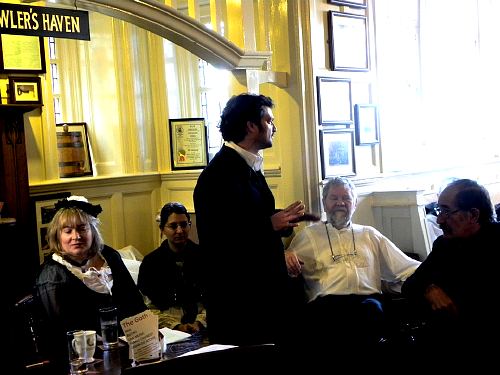 Bob Allan and Roger Knox honoured the 81 Witches Pardonned as extracted by Ros Parkyn from Anne Marie Allen's original research. Last but not least the whole cast, with that fine Welsh tenor Gareth Bryn-Jones singing a drunken song, paid their tribute to the Pride of The Panners mural by Kate Hunter on the mezzanine stairs arranged by Roger Knox.