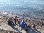 It's true. When Lord Mayor Jorgen Linder and family reached Prestonpans at the end of their Sunday visits to two other Goths at Armadale and Newtongrange, they had to gather pottery shards off the beach before they qualified for a can of Coke Zero. But there you go ... it was meant to be good relaxation before Gothenburg Day, Monday July 23rd, and its very full schedule. [Ever since the Lord Mayor's first visit in 2003, as the Goth in Prestonpans was undergoing restoration, July 23rd has been designated as Gothenburg Day.]