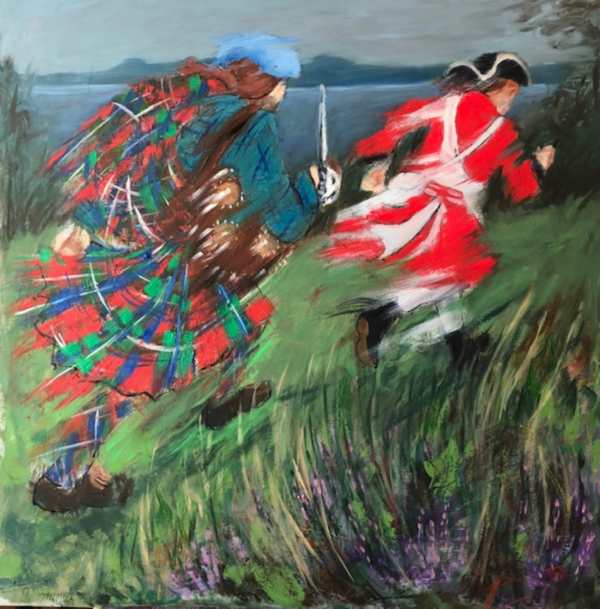 Regardless of such judgemental research, however, the Trustees were treated to the fine cake pictured above prepared by Sylvia Burgess, Secretary to the Trust. Its iced surface shows for the first time a new artwork commissioned by the Trust from Janet McCrorie, of a Highlander clad in the Trust's own tartan pursuing a fleeing Redcoat, itself a longer lasting celebration of those 100 Meetings … although normally lasting some 3 hours at a time they are enlightened by supper at the Gothenburg which is HQ to the Trust.