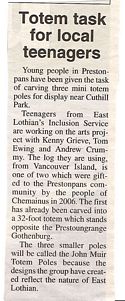 Youngsters from East Lothian Inclusion Service based at St Joseph's working with Kenny Grieve, Tom Ewing and Andrew Crummy will create three smaller poles that will eventually appear close by Cuthill Park. They will be called “The John Muir Totem Poles” because the designs the group are coming up with reflect the nature of East Lothian.