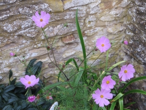 … and next there's a surprise from four rose blooms in the shrubbery along the edge of Rectory Lane and last, but certainly not least, the cosmos bipinnatus by our dahlia cactus and Christmas roses.