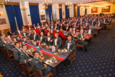 The Officers shown at Dinner are not alas from Cardington since no amount of searching on the internet could trace any record but the room is similar and the occasion is precisely as recalled. What research did show is the origins of these occasions … Dining In is thought to have formally begun in sixteenth-century England in monasteries and universities although some records indicate that militaries have held formal dinners as far back as the Roman Legions. During the eighteenth century the British Army incorporated the practice of formal dining into their Regimental Mess system. Customs and rules of the Mess were soon institutionalized and included even in "King's/ Queen's Regulations". The Dining In became a tradition in all British regiments whilst the Americans taking many of their traditions from the British military did likewise in the eighteenth and nineteenth centuries although the tradition waned after the Civil War. During World War II the custom was revived in the US Army's 8th Air Force based in Britain. Their Officers were invited to participate in British Mess Nights and then obligated to reciprocate! Dining In Nights are formal dinners for members of the Mess at which it is usual to 'Dine-Out' any Officer leaving the unit. The tradition was inherited by the Royal Air Force due to its main predecessor being the Royal Flying Corps, hitherto part of the Army. One of the most significant features of all such occasions was The Loyal Toast. At such Dinners the port and madeira decanters are placed at pre-determined places and in front of the President and Vice President. They remove their stoppers simultaneously and pass the decanters in a clockwise direction/to the left. Wine stewards follow the decanters round the table with a jug of water filling the glass of any diner who declines port or madeira. Then the President and Vice President will fill theirs' last after which they re-stop the decanters. All stewards will then be required to leave the dining room before the President calls upon the Vice President to propose the Loyal Toast. It should be remembered that whilst the Army and Royal Air Force stand for the Loyal Toast the Royal Navy remain seated. While passing the decanters Royal Navy stewards traditionally ensure the decanter does not leave the table, typically by tipping the decanter to fill a glass held below the table edge before sliding it to the next guest. In the Royal Air Force it is passed from hand to hand without touching the table.