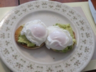And so to the new tradition at The Lodge. Firstly no latin grace which we had at Reed's School but still haven't tracked down; just a three course Dining In Night with cocktails before. Cocktails were Martini or Campari with Russchian and a slice of lemon. No ice. Stirred. Inaugural Dinner began with Cornish Crab Pâté followed by Moussaka with Fennel. For dessert, optional, a Baked Apple with Custard. Volvic Mineral Water and Gavi White wine accompanied the meal. It was a great success ...so much so that we overslept today and then read the Sunday newspapers meaning Brunch was the order of the morning - Poached Egg and Avocado on an English Muffin. We debated whether Saturday would always be the best night for Dining In at The Lodge but decided it should be since a Saturday, even though it comes after Fish Friday and before Sunday Roast, was an appropriate day - psychologically.