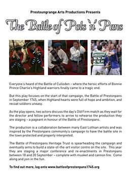 P.S. If attendance by Sunday is not on, there will be a final chance this year to see the production at the Prestonpans Community Centre on Thursday September 18th as part of the Battle Symposium and annual re-enactments. But why not take it in twice. It's certainly worth it and tickets are just £7/ concessions £5 either from the Fringe Box Office or at the door.