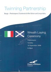 The Mayor of Barga came to The Prestoungrange Gothenburg on September 19th to sign formally the Twinning Agreement between his Tuscany mountain town and those of us who dwell in the Preston Lodge School 'Catchment Area' - which in practice means Prestonpans, Cockenzie, Port Seton and Longniddry. Our Poet Laureate John Lindsay took the opportunity to present a copy of his poem to honour the occasion, translated into Italian of course!