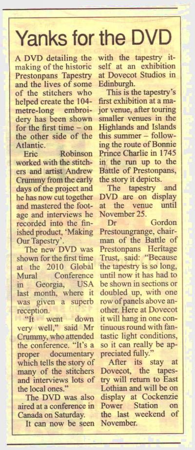 1. What our global friends make of what we've been at with The Prestonpans Tapestry on October 29th; and