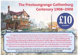 The Gothenburg is running a pre-Centenary Celebration of the Arts Works House Wines for 500++ GothMembers. The voucher worth £10 under conditions stated thereon is available from The Goth on Tuesday nights whilst stocks last or can be downloaded here. Simply enlarge the image and print it out. If you attend to the conditions you will enjoy an even better night at the Goth or one of the enviable Sunday lunches. Its currency is from the arrival of the labelled House Wines which will be no later than Thursday July 19th when Pat Fox gives a Private Viewing of his 2007 Burriss Bursary Paintings in the James Park Bistro.