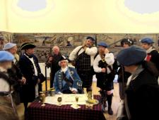 As history, and our Tapestry panels remind us, on arrival at Duddingston the Prince called a Council of Chiefs which resolved they would proceed to attack Cope at the earliest opportunity. In the Kirk Hall where the Tapestry was hanging, the Prince [aka Arran Johnston] and members of the Regiment re-enacted the moment to a most appreciative audience. It was an audience that had flowed in throughout the day, including Sunday School and a school group, with a total count well in excess of 400. Stichers who had created local panels were there and more besides. But for one and all, as the afternoon wore on, it was time to attend the third festival - at the Sheep Heid.