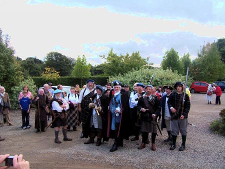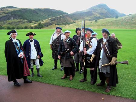 It was on September 19th that the Prince and his army marched across Arthur's Seat to Duddingston to begin their confrontation with Cope who had just landed at Dunbar. It meant up and over rather than around the western edge which would have been in the line of fire of the castle's cannons. Under Colonel Watters command the Alan Brecks assembled and gathered in what he politely termed 'the baggage' of walkers just behind the Palace of Holyroodhouse where earlier in the week HM Queen Elizabeth and His Holiness Pope Benedict XVI had taken lunch. The weather at 10 am had seemed less than encouraging but by 1.30 pm it was fine for the march.