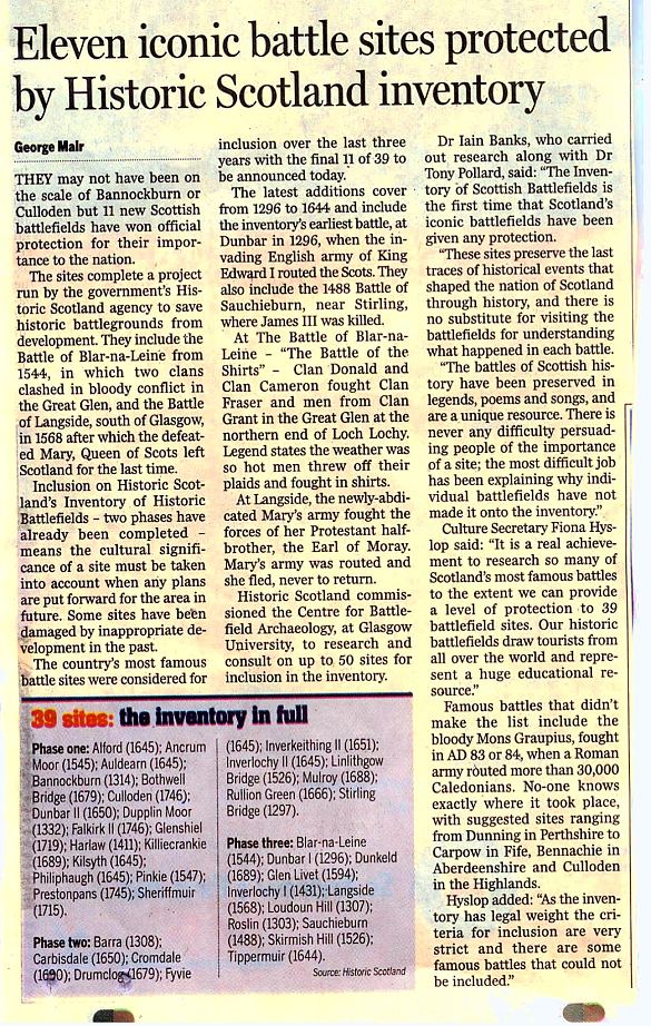 Historic Scotland's Battlefield Inventory now finalised