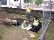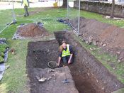 .... at their Community Centre dig, including Gordon Veitch with the Trust's BattleGame Board, a bevvy of spontaneous re-enactors and a 1.5 pounder cannon made at Glasgow University by Alan Birkbeck in the Engineering Department - plus his firing crew. - and of course gongoozlers aplenty.