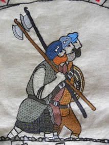 Below Yvonne Murphy has embroidered the Union Jack flag without of course the inclusion of St Patrick's Cross. It was this flag Cope's army flew. Confronting them are Jacobites as stitched at the Craft Clinic in Fisherrow.