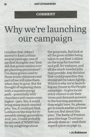 Since the end of its 1000 year industrial life in the last century, Prestonpans and the neighbouring communities have created a new sense of identity for themselves. It's not been easy but it's happening and going in a direction that has met with broadscale consent. To disfigure that in the name of the nation's self sustaining economic development, with no meaningful debate and input is ridiculous and has created the inevitable reaction.