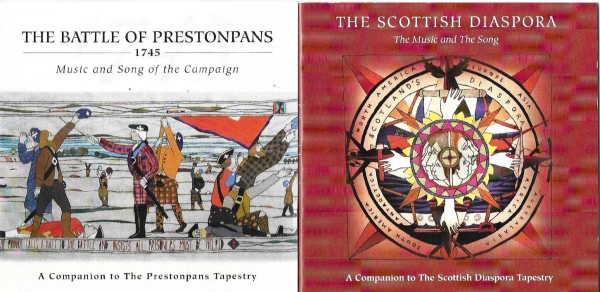 CDs really not tapes; but they holds musical secrets alright. Ian Green, retired police officer with a fascination for Scottish traditional music has devoted his second career to building the country's top name - Greentrax. He just happened to have his workshops one floor below Andrew Crummy at Cockenzie School now a suite of studios. Knowing what we've been about he suggested CDs to accompany each tapestry would be welcomed and set to the task. The 1745 CD contains all the songs you'd expect including Davvy Steele's Johnnie Cope, Coreen Scott singing Lady Frances Gardiner's Lament and our own embroiderers Pibroch - the Panel Beaters! These two great collections are readily available from our own Boutique.