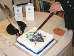 The Court Session was celebrated with a magnificent cake seen below; and beneath the feathers lies a copy of our own Court Proceedings.... flattery indeed!