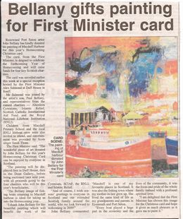Did your card Get Lost in the Post? There were a few cards lost in the post from the First Minister, or maybe it was an oversight, but nobody can blame John Bellany who caught Alex Salmond's eye. Just in case ... click to enlarge the cuttings P.S. Next year Morrison's Haven perhaps?