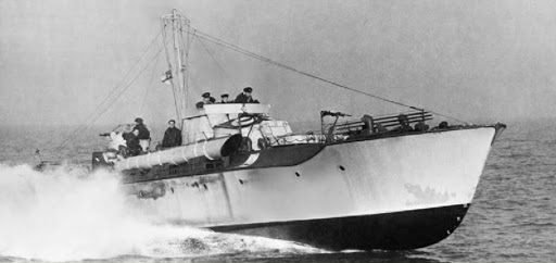 * In October of 1942 Bob Drayson was the first Lieutenant on MTB 236. His commanding officer had gone sick which meant he had temporary command when the flotilla was included in a force of MTBs and destroyers in an action off the French coast. The German auxiliary cruiser Komet escorted by some torpedo boats was passing through the English Channel to start her second commerce raiding cruise. The Allied force headed at speed for an interception point near Cap de la Hague. 2 MTB flotillas were following 5 destroyers. Drayson was in the second flotilla and, as junior commanding officer, last in the line of MTBs as they crossed the Channel. In the very dark night of 13 October the leading flotilla lost contact with the destroyers and then Drayson became separated from the rest of the MTBs as they halted for the flotilla commanders to discuss what they should do.