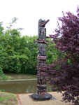 The pole in Berkhamsted stands on the Grand Union Canal in the gardens of what is now Alsford Wharf, a modern apartment building. Its made of Canadian red cedar as we know it should be; and more than 30 years old now. But the clue as to why it is there lies in the family name Alsford whose timber wharf it was for many a year. And the tale of how it came to be carved is told in print by John Tearle.