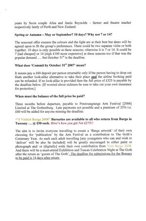 DEADLINE FOR REGISTRATION is October 31st to secure these terms including the airline ticketing. Be in contact as soon as possible with Gillian Hart, Arts Festival Treasurer, at 01875 819922 ... or a word with Andrew Crummy as he works at Sam Burns' Yard perhaps.