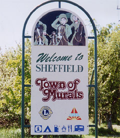 Any and all visitors will find they are one of some 150 000 each year that pause on Main Street, making use of a great Tourism Information Centre and Parking facilities. In my case I popped into the first shop that carried muralphanalia and it happened to be Beth Pagel Printing and Laundrette service. She pointed me up street to the Tourism Office and they to John Dyer's Slaters store. Within an hour John, The Brian, Lady Avril and I were all eating at Rossini's lately a bank still with its Chubb safe, but now the town's major bakery and eaterie for the passer through. Talk was of great pleasure to see an immediate post-Moose Jaw Conference visitor and how could Sheffield get more deeply involved with the Global Association, and make a tender to host the Global Conference in 2008. And let us all hope that comes true.