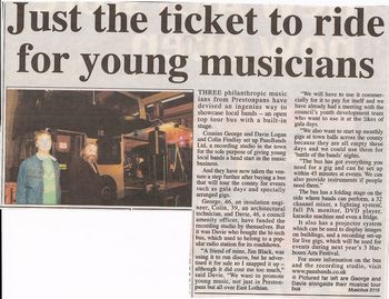 We cannot claim credit for the original idea of a mobile BattleBus. We were inspired by the lead given in The Pans by 'The Logan Cousins' and Colin and friends with their Music Bus, detailed below.