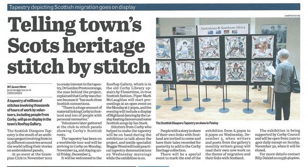 Scots in Corby give a warmest of welcomes to our Diaspora Tapestry