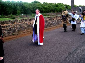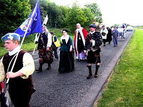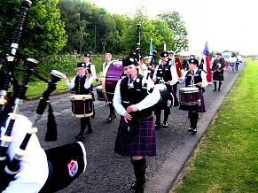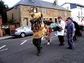 Prestonpans 3Harbours Parade - Goloshin and the Mummers, PL Pipers and Alan Brecks ...Parade before sunset ... a glorious Friday night concludes Day 1 of 3 Harbours in the Pans