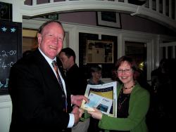 It's now on sale at The Prestoungrange Gothenburg, from Gillian Hart and 3Harbours Officers, and from Andrew Crummy's Studio Cockenzie ... £6 each. Magnificent artwork for the 2011 Burriss Bursary Awards and pictured below are some of the winners led by the overall winner Matt Curtis with Sylvia Burgess.