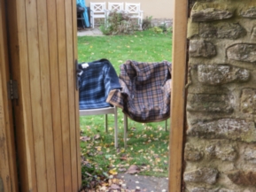 Avril's idea .. beautiful Duffel coats … The idea is that we commune with those at The Manor House through the open door which avoids breaking the law! And of course it worked … at 1.45pm all four assembled, us to the west and Jules and Laura to the east. We got the latest Bulletins on Gerry's uncomfortable progress after his open heart surgery - the taking of veins from his leg to use for his heart bypasses [?] had left his right leg painful and the District Nurse had called and whistled up some antibiotics for him; news of Henry coming home with a better report [for once] than Elliot from Wellingborough - is that because he has no extra football out of school? We learnt that the new discipline is the parents no longer chase up homework, just remind the lads they face the consequences of not doing it if thy don't. We learnt that Henry fell asleep in front of his laptop when he failed to show for his mid-evening snacks … I boasted of my £6,000 Grant from Bòrd na Gàidhlig and wondered how we were going to deliver it all … and Avril got guidance on where to find Click & Collect Tesco in Wellingborough - a new destination for us. Avril went solo for this excursion at 3pm today and white Savies were out of stock ….