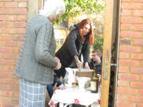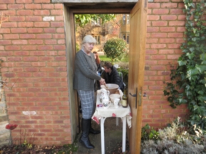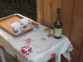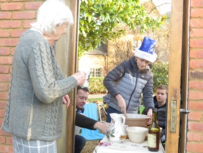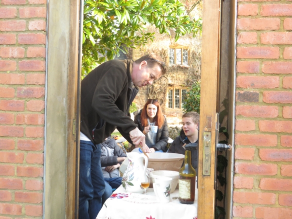 2pm sees the Family all Stirring Up the pudding … Avril had made ready in the large mixing basin and included overnight the Calvados, already 20 years old when we obtained it in Normandy and now 30 years old! It was chilly in the autumn sunshine so the adults had a tot and hot chocolate all round was served as well. It was my role to explain the silver thrupennies and demonstrate their actuality … I was dressed in Lochnaw tartan and South Korean Christmas tie, Avril a House of Bruar very warm Cable Cardigan and Elliot a suitably festive hat. Then Elliot initiated proceedings by adding the final ingredients and inviting the family's top footballer talent, Henry, to make the first stir. His biggest question was which way was east/ west .. but he resolved that and we all followed suit …. he himself had just arrived from the east i.e. The Manor House …..