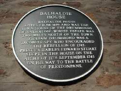 First Fassfern and the origins of the white rose and cockade there were overlooked; lately the Stitchers of Dunblane have reminded the Team that the Prince enjoyed an overnight stay with William Drummond of Balhaldie, a MacGregor and acknowledged Jacobite sympathiser with relatives in Paris serving on occasions as a spy. The Prince dined and lodged with him at Balhaldie House on September 11th 1745. The maid, invited to his bedroom to clean his boots, failed to kiss his extended hand instead actually kissing his boots!
