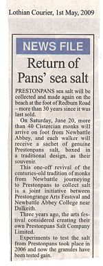 It's a joint project bewteen the Arts Festival and Newbattle Abbey College - which is where the monks stayed from 1120 until the Reformation and from where they journeyed to the Priest-Toun-Pans to collect their salt.