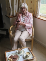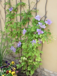 Penultimate Coffee during Lockdown; next week will be a Big Occasion! Here the clematis has come to full flower but the hollyhocks are in an advanced state of aestivation … here's hoping next Friday. And they're already taller than Elliot, our talisman thus far.