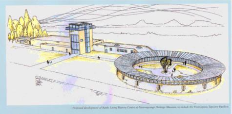 The Trust is not solely concerned with displaying the Tapestry of course. The Trust came into existence in 2006 to conserve and interpret the battlefield itself. And it very much intends to achieve that. However, the putative Tapestry Pavilion and Living History Centre at Prestongrange is obviously extremely important. Gareth Bryn-Jones, current Chairman and a professional architect has been responsible for creating the draft ideas and model shown below.