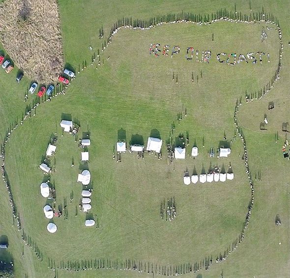 Friends aplenty from the Coastal Regeneration Alliance gave a magnificent show of support for the Battle Trust on Sunday straight after the charging finale of the re-enactments. Hundreds held hands in solidarity and sang Auld Lang Syne together led by the 1745 Battle Trust's own baritone Chairman Gareth Bryn-Jones. [Seen above from CRA's own friendly drone, spelling out the slogan Keep Our Coast.]